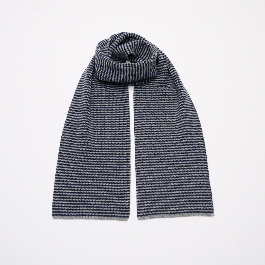 Dark Navy & Grey Striped 5 Ply Cashmere Scarf