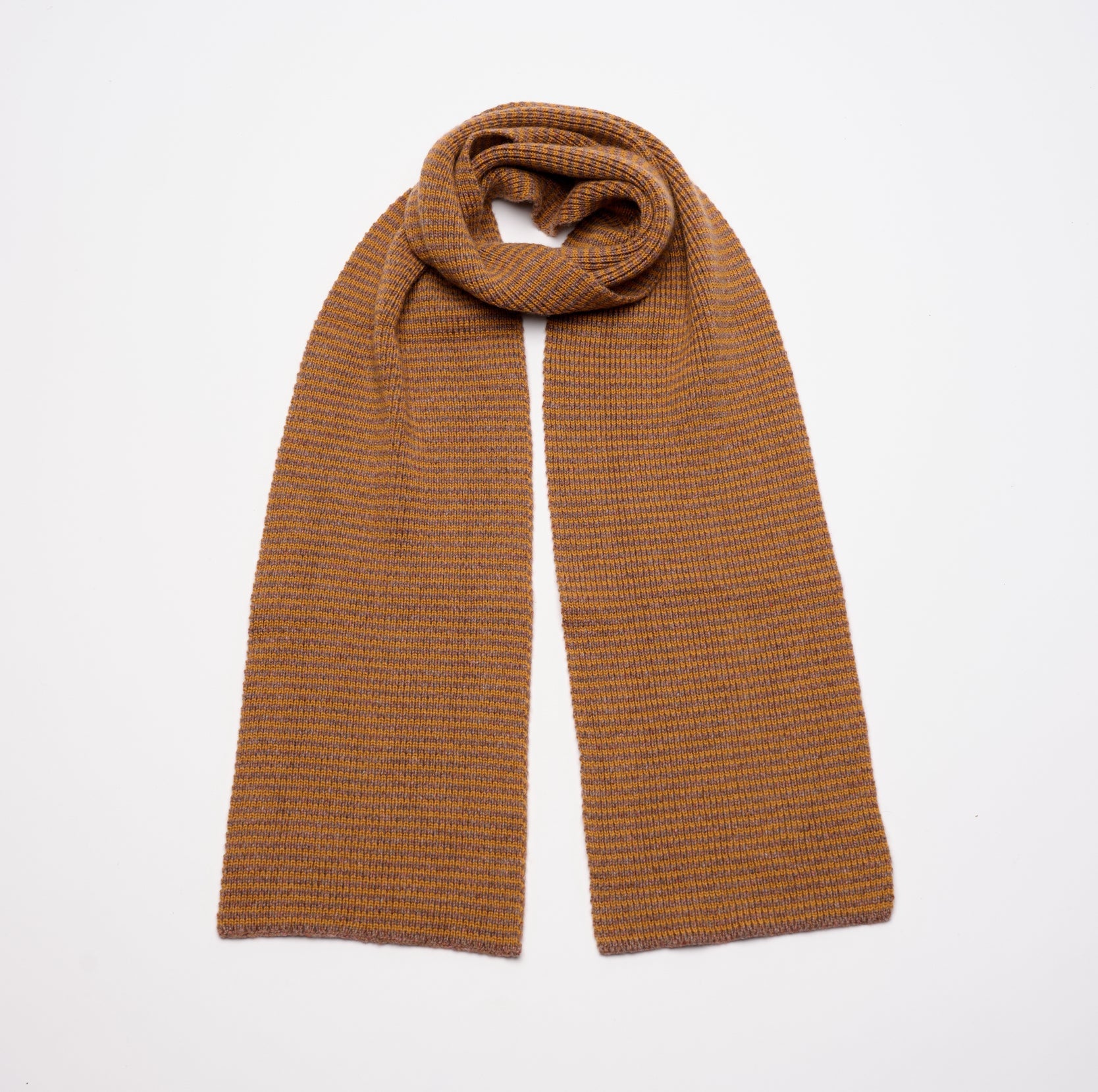 Ginger & Brown Marl Striped 5 Ply Cashmere Scarf