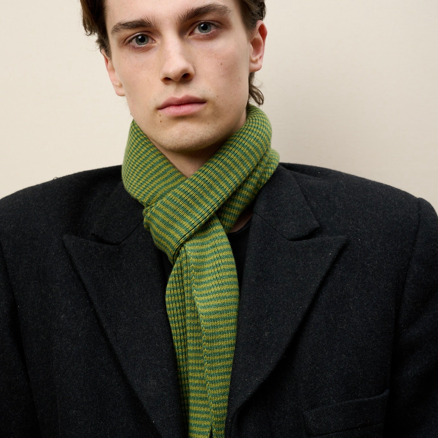 Matcha & Fern Green Striped Cashmere Scarf