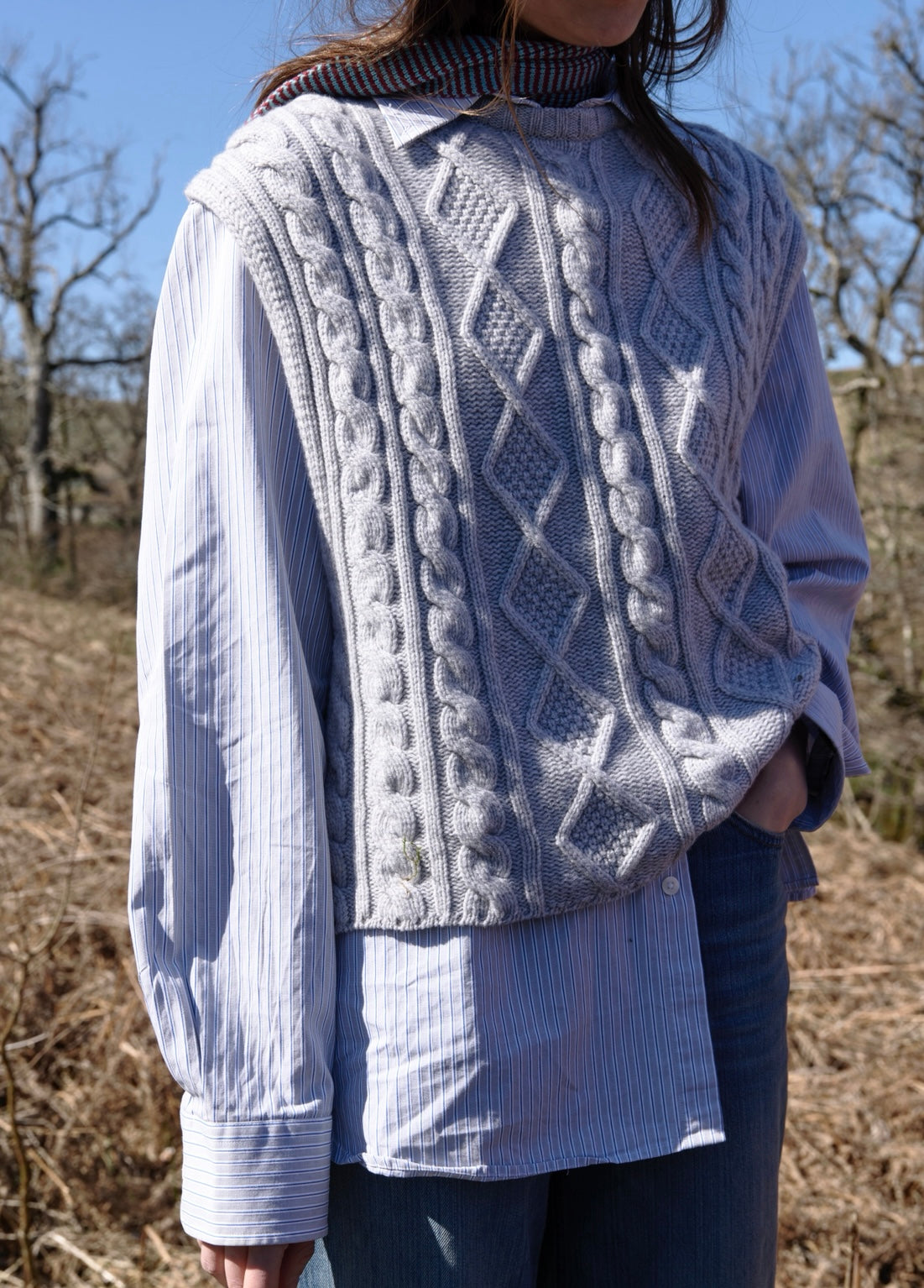 Oversized 8ply Aran Cable Cashmere Tank Top