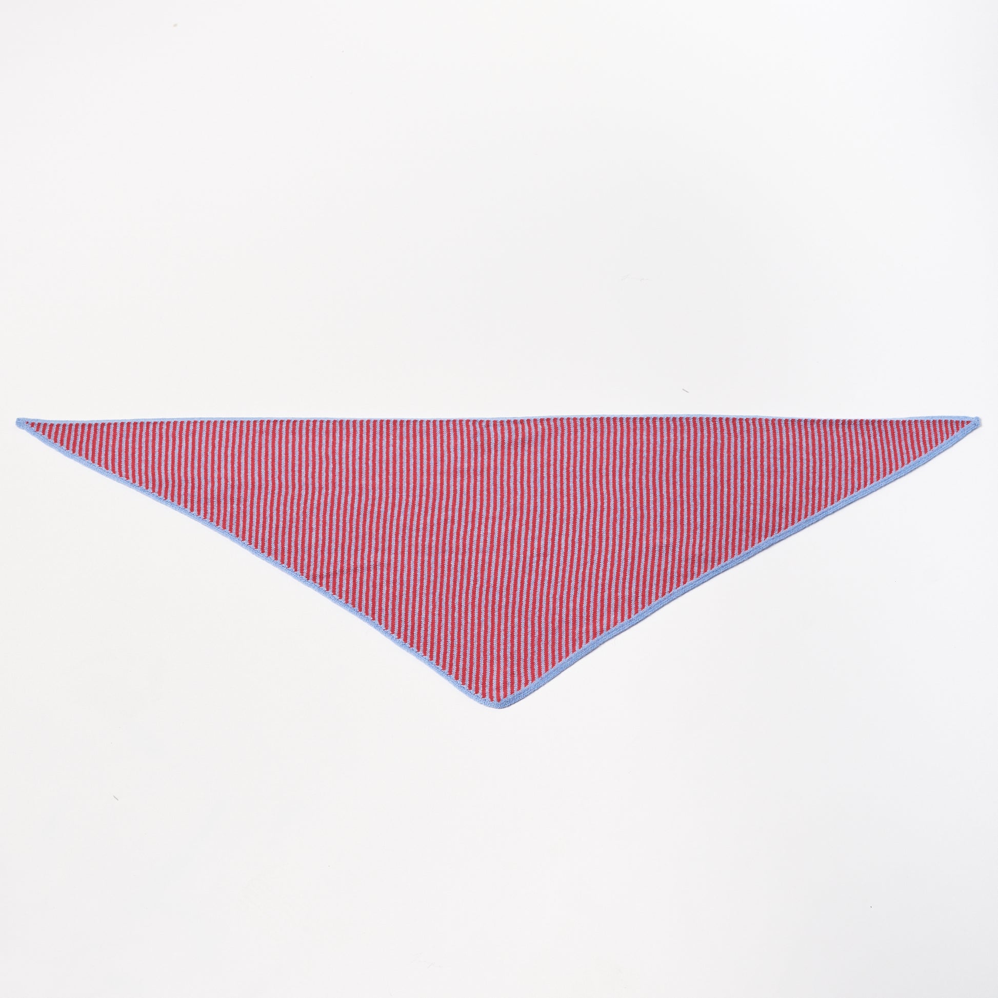 Made in Scotland from 100% cashmere, the bandana striped scarf features Light Blue and Red stripes. Soft, versatile, and timeless, it can be worn in various fun ways, around the neck or over your head and styled up or down, making it a sophisticated addition to any wardrobe.